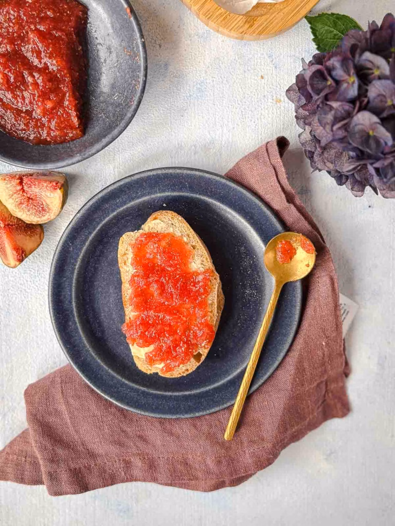 Die Kombination aus süßen Feigen und leicht säuerlichen Äpfeln ist sowieso ein Volltreffer. Die Früchte ergänzen sich perfekt, sodass die Marmelade weder zu süß noch zu schwer wird. Mit 1:3 Gelierzucker bleibt der Fruchtanteil schön hoch – und genau das schmeckt man. Statt pappsüßer Aufstrich bekommst du eine herrlich fruchtige Marmelade, die sich auch wunderbar zum Verfeinern von Joghurt, Desserts oder sogar Käseplatten eignet.